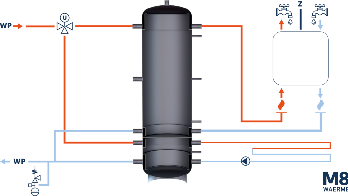 Unser Schichtladepuffer lagert Wärme aus einem oder mehreren Heizgeräten ein, bis sie im Haus benötigt wird. So können die Laufzeiten der Wärmeerzeuger genau dann erfolgen, wenn günstiger Strom (eigener oder aus dem Netz) zur Verfügung steht.